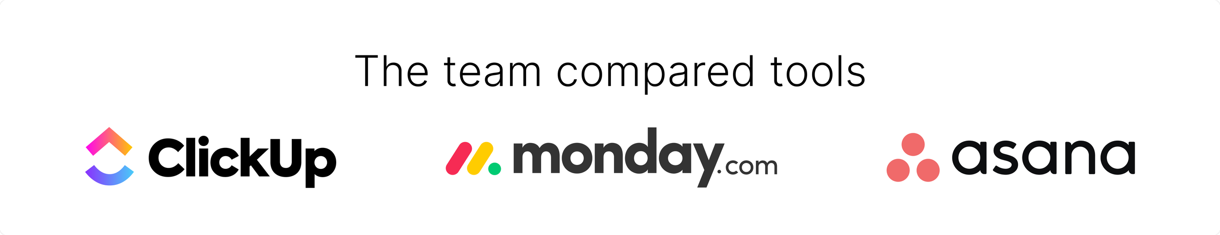Winning Solution: ClickUp - chosen for its customization options, intuitive interface, and cost estimates